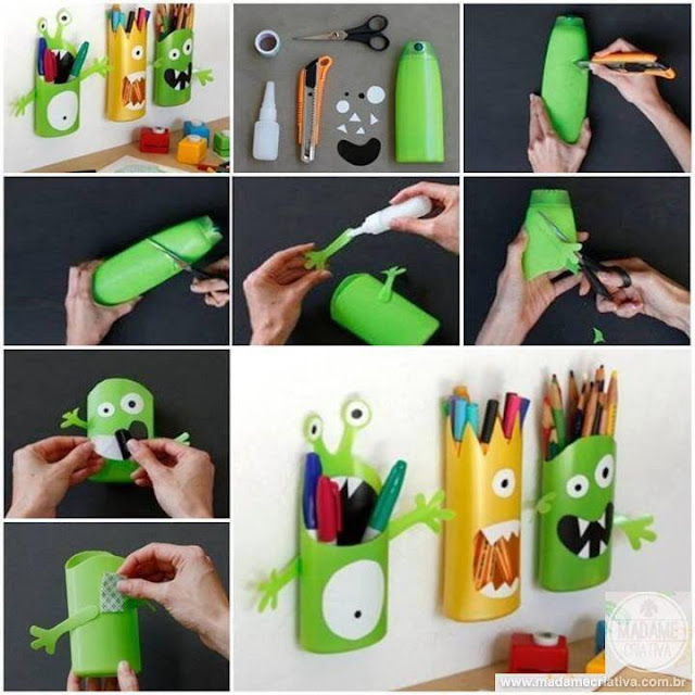 قارورات الشموان مثلا يمكن جعل منها حاوية للاقلام لاطفالك و تزين غرفهم و ترتب ادواتهم