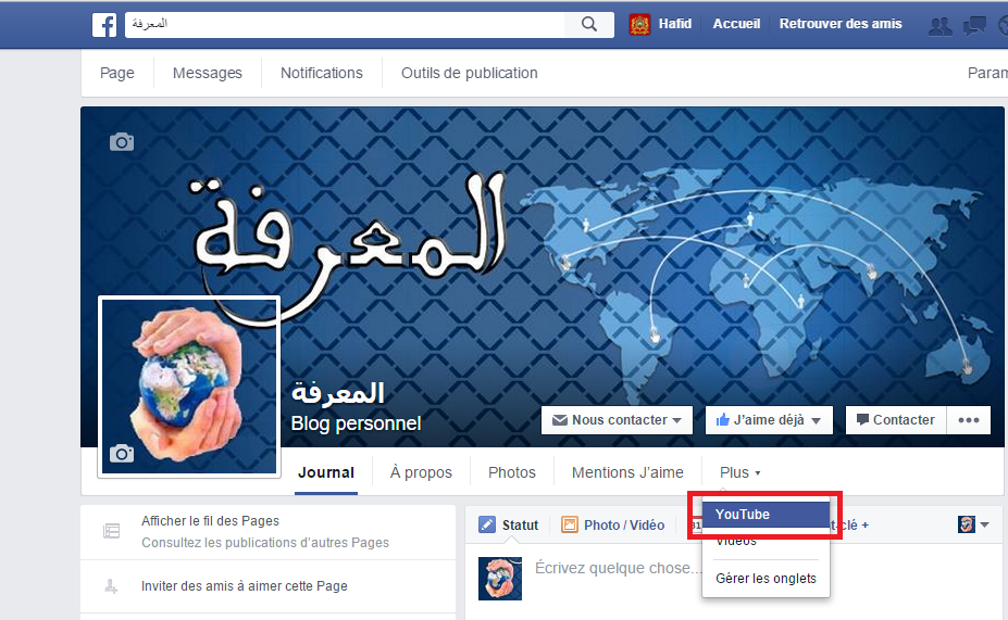 كيفية اضافة قناة اليوتوب لصفحة الفايسبوك